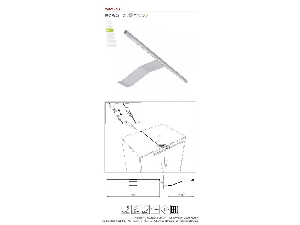 Osvětlovací LED těleso, napájené vstupním napětím 12 V je vhodné jako doplněk k zrcadlům a zrcadlovým skříňkám, kterým chybí osvětlení. Svým stupněm ochrany vyhovuje i pro použití v koupelně.