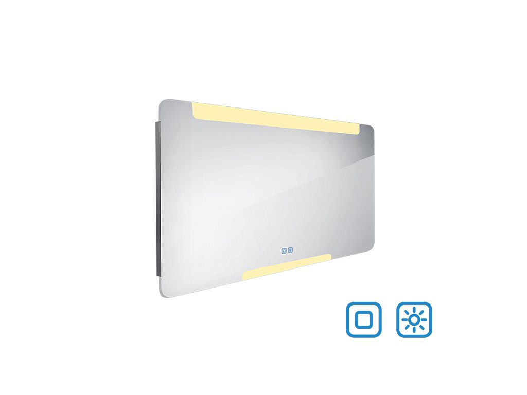 Zrcadlo do koupelny 120x70 cm s osvětlením nahoře a dole, dotykový spínač je skvělým doplňkem do koupelny. Zrcadla do koupelny NIMCO vynikají kvalitním zpracováním a moderním designem. Svícení za použití akrylátového skla plexiglass. Konstrukce je z hliníkového rámu 32x19 mm, sklo zrcadla o tloušťce 5 mm. Připojení 220-240 V. Zapínání / vypínání / ovládání dotykovým senzorem s pamětí. Možnost nastavení barevné teploty svícení a intenzity svítivosti. Životnost LED diod je až 50 000 hodin. Ochrana IP 44. Součástí zrcadla je kabelová spojka, IP 44.Koupelnové podsvícené LED zrcadlo