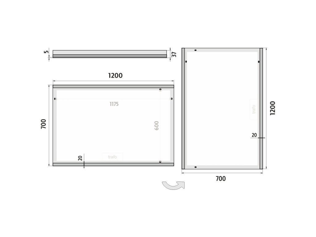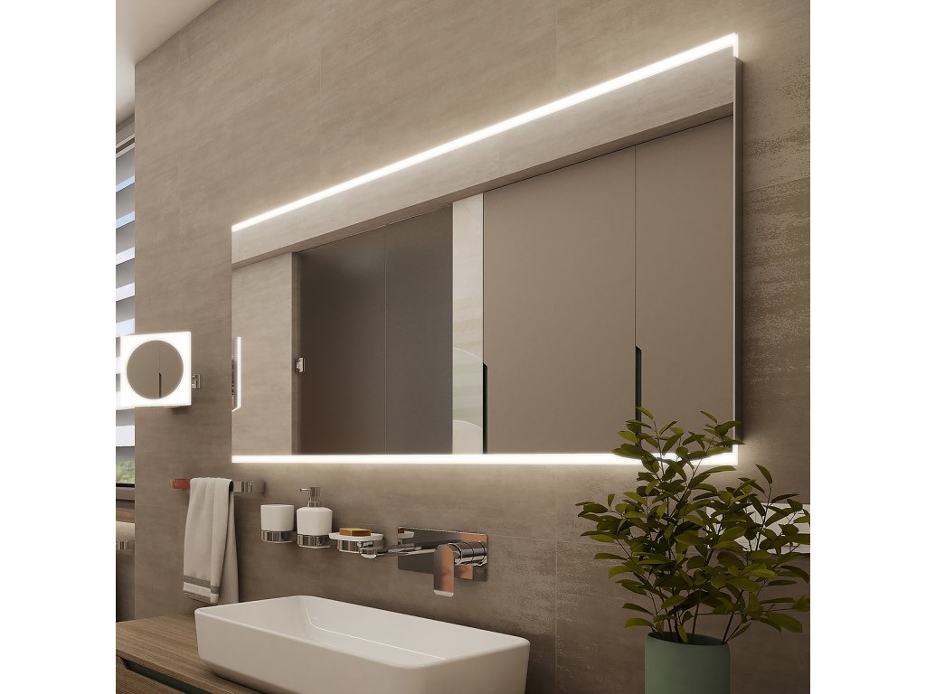 Obdélníkové bezrámové zrcadlo s ostrými rohy a podsvícením ze spodu a shora pro rovnoměrné a stylové osvětlení.Zrcadlo bez integrovaného vypínače je určené k připojení a ovládání nástěnným vypínačem. Barva podsvícení zrcadla je pevně nastavena.