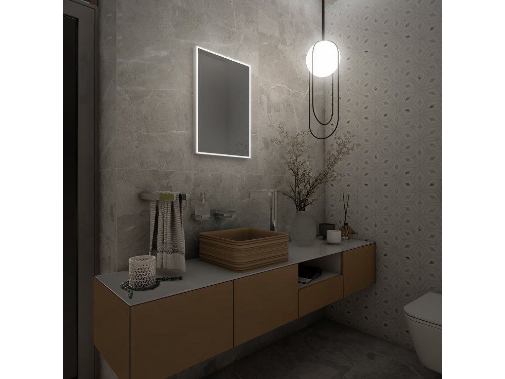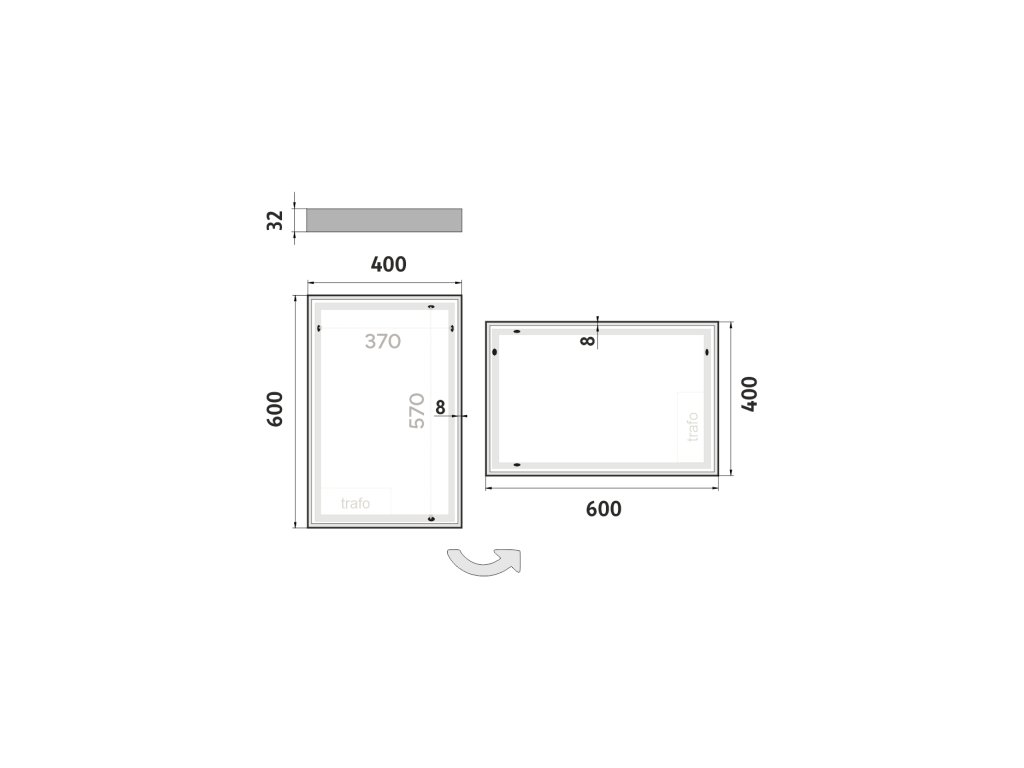 Obdélníkové zrcadlo s rámem s ostrými rohy a celoobvodovým svícením pro dokonalé a rovnoměrné osvětlení.Zrcadlo bez integrovaného vypínače je určené k připojení a ovládání nástěnným vypínačem. Barva světla zrcadla je pevně nastavena.