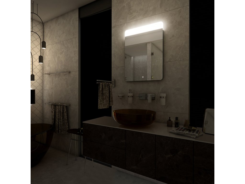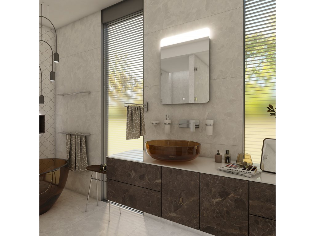 Zrcadlo do koupelny 60x80 s osvětlením, dotykový spínač je skvělým doplňkem do koupelny. Zrcadla do koupelny NIMCO vynikají kvalitním zpracováním a moderním designem. Svícení za použití akrylátového skla plexiglass. Konstrukce je z hliníkového rámu 32x19 mm, sklo zrcadla o tloušťce 5 mm. Připojení 220-240 V. Zapínání / vypínání / ovládání dotykovým senzorem s pamětí. Možnost nastavení barevné teploty svícení. Životnost LED diod je až 50 000 hodin. Ochrana IP 44.Koupelnové podsvícené LED zrcadlo