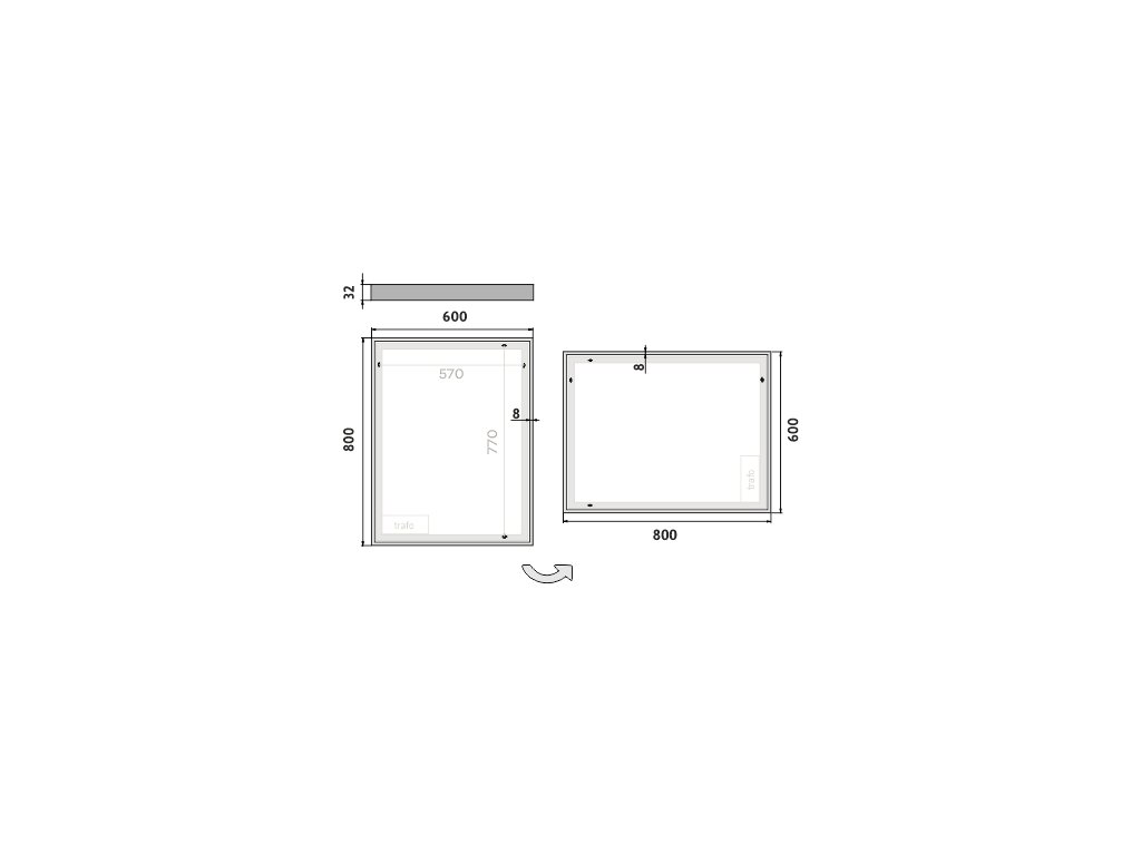Obdélníkové zrcadlo s rámem s ostrými rohy a celoobvodovým svícením pro dokonalé a rovnoměrné osvětlení.Zrcadlo bez integrovaného vypínače je určené k připojení a ovládání nástěnným vypínačem. Barva světla zrcadla je pevně nastavena.