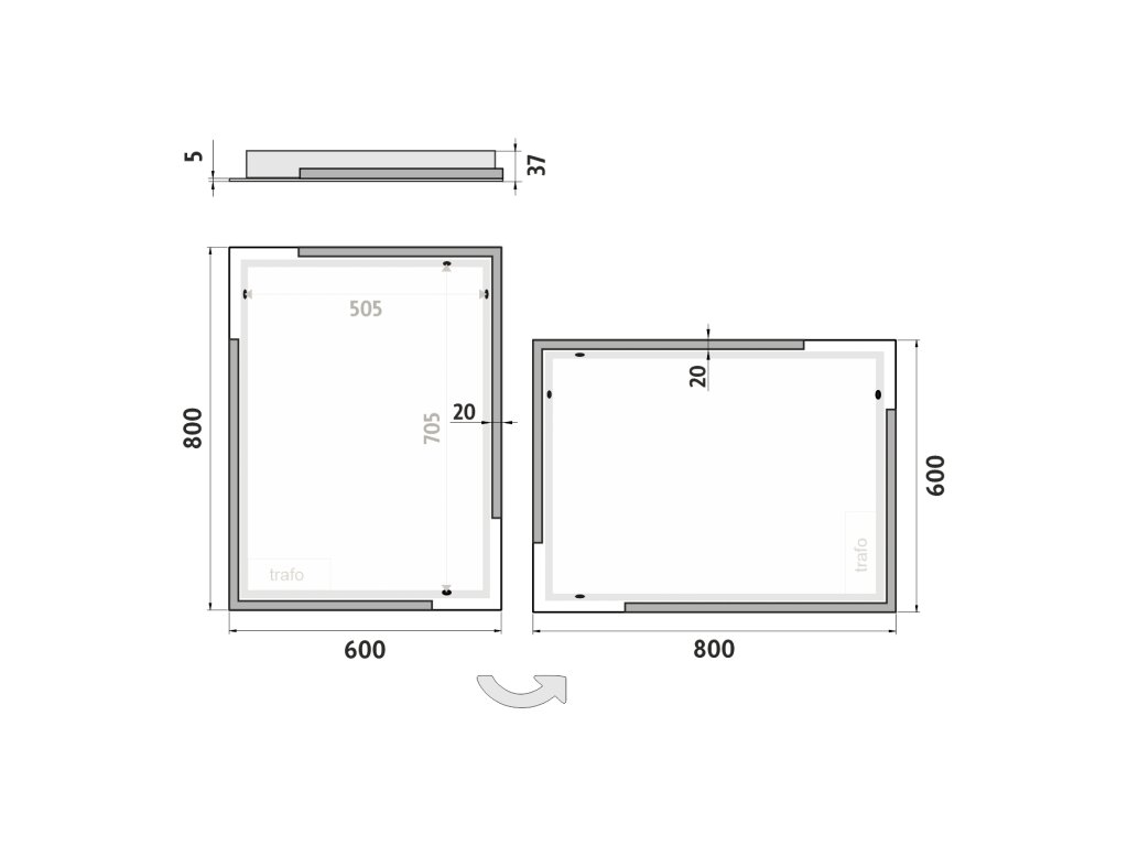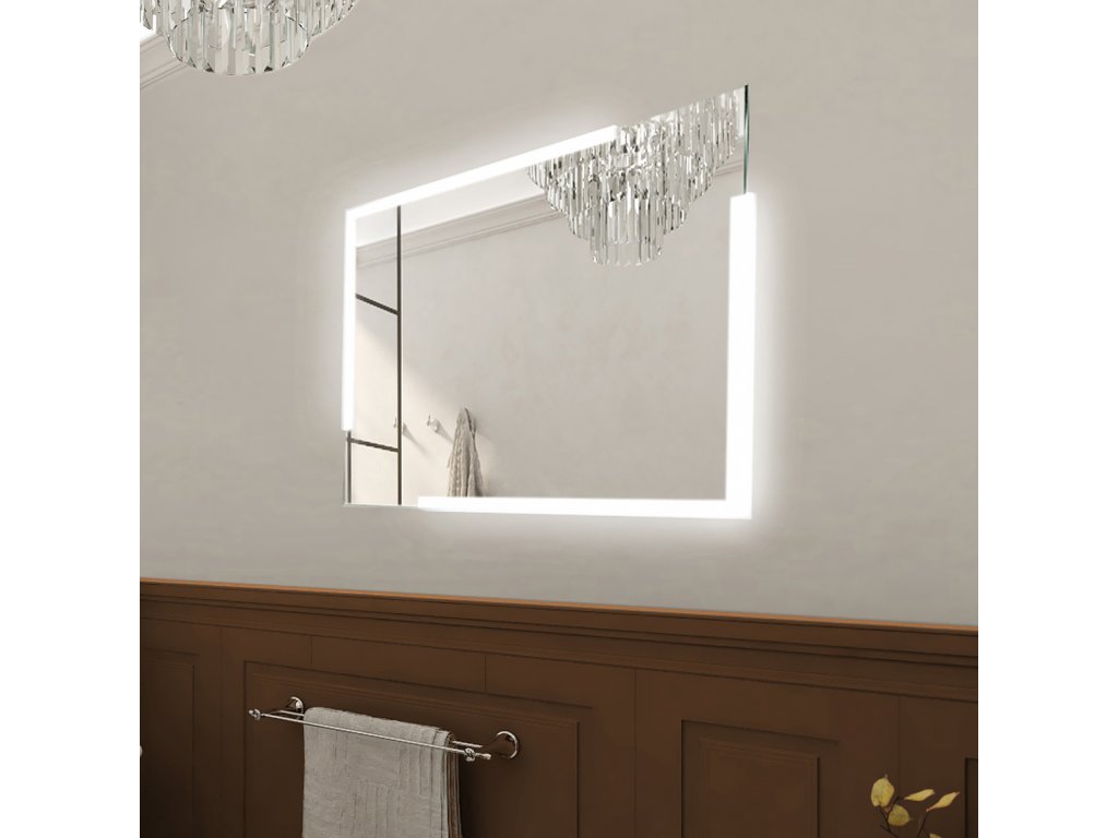Obdélníkové bezrámové zrcadlo s ostrými rohy a celoobvodovým podsvícením pro dokonalé a rovnoměrné osvětlení.Zrcadlo bez integrovaného vypínače je určené k připojení a ovládání nástěnným vypínačem. Barva podsvícení zrcadla je pevně nastavena.