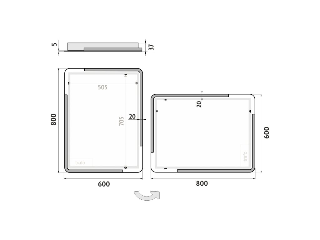 Obdélníkové bezrámové zrcadlo s oblými rohy a celoobvodovým podsvícením pro dokonalé a rovnoměrné osvětlení.Zrcadlo bez integrovaného vypínače je určené k připojení a ovládání nástěnným vypínačem. Barva podsvícení zrcadla je pevně nastavena.
