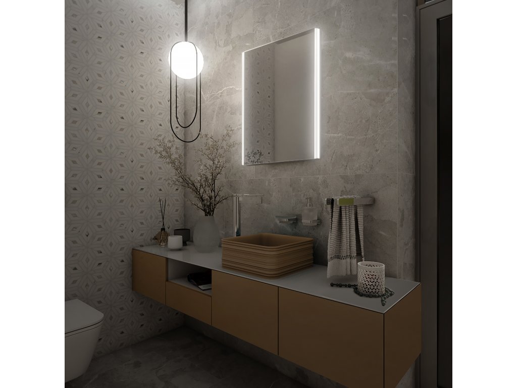 Zrcadlo do koupelny 60x80 s osvětlením po stranách je skvělým doplňkem do koupelny. Zrcadla do koupelny NIMCO vynikají kvalitním zpracováním a moderním designem. Zrcadlo je podsvíceno LED pásky ukrytými v PVC tubě (profil U 20x20 mm), která je umístěna pod vypískovanými bočními stranami zrcadla. Světlo neprochází pouze skrz sklo, ale vystupuje také z bočních stran zrcadla. Plně svítí 20 mm bočních stran zrcadla a vytváří tím zajímavý světelný efekt. Konstrukce je z hliníkového rámu 32x19 mm, sklo zrcadla o tloušťce 5 mm. Zrcadlo lze uchytit horizontálně a vertikálně. Připojení 220-240 V. Ochrana IP 44. Bez vypínače. Zapojení do el. rozvodu a zapínání přes vypínač světel v místnosti. LED čipy s vysokým výkonem. Barevná Teplota denní bílá – jasné polední světlo. Životnost LED diod je až 50 000 hodin.Koupelnové podsvícené LED zrcadlo