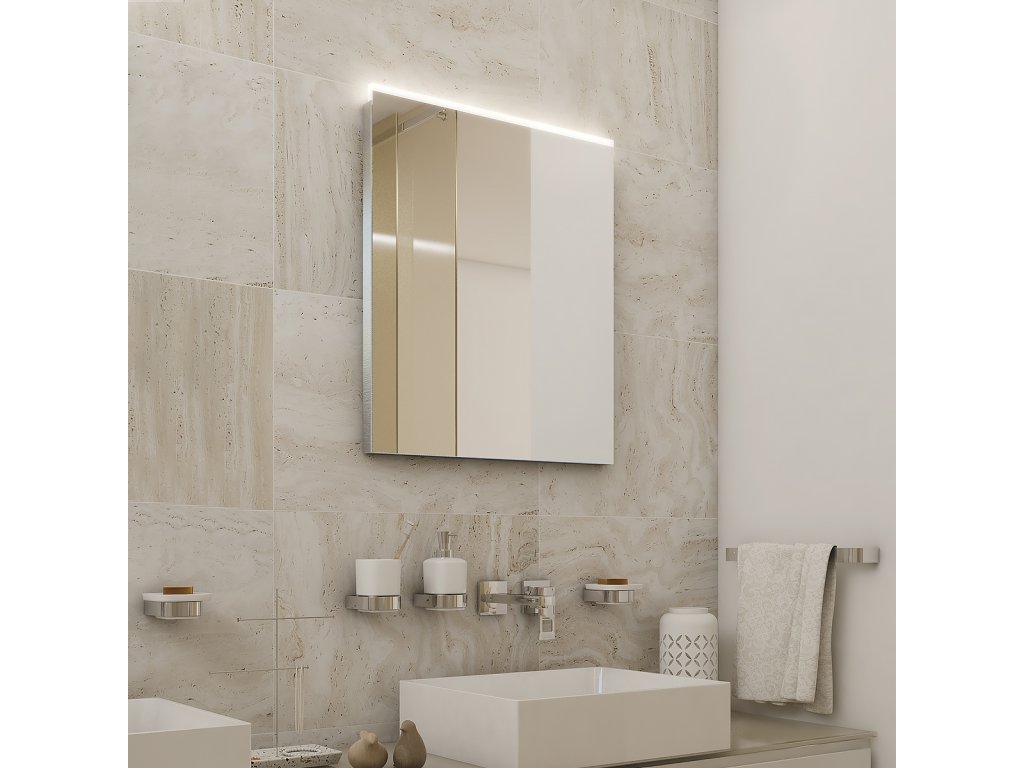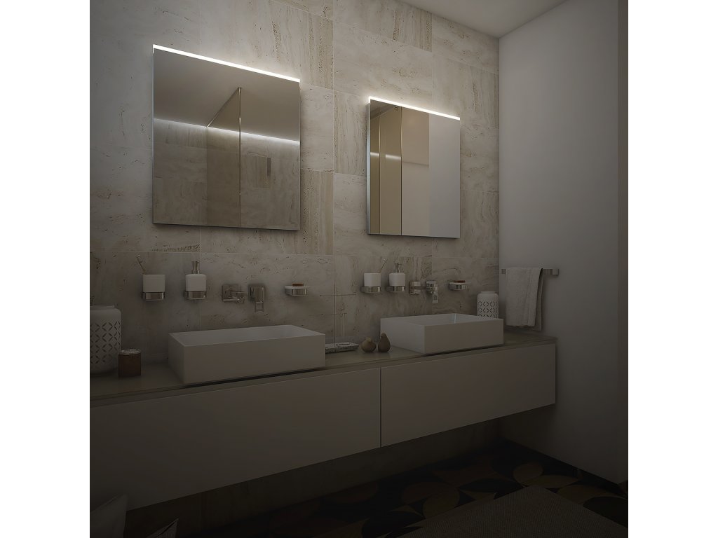 Zrcadlo do koupelny 80x60 s osvětlením je skvělým doplňkem do koupelny. Zrcadla do koupelny NIMCO vynikají kvalitním zpracováním a moderním designem. Svícení za použití akrylátového skla plexiglass. Konstrukce je z hliníkového rámu 32x19 mm, sklo zrcadla o tloušťce 5 mm. Zrcadlo lze uchytit horizontálně a vertikálně. Připojení 220-240 V. Ochrana IP 44. Bez vypínače. Zapojení do el. rozvodu a zapínání přes vypínač světel v místnosti. LED čipy s vysokým výkonem. Barevná Teplota denní bílá – jasné polední světlo. Životnost LED diod je až 50 000 hodin.Koupelnové podsvícené LED zrcadlo