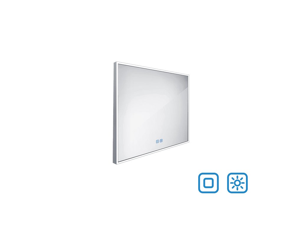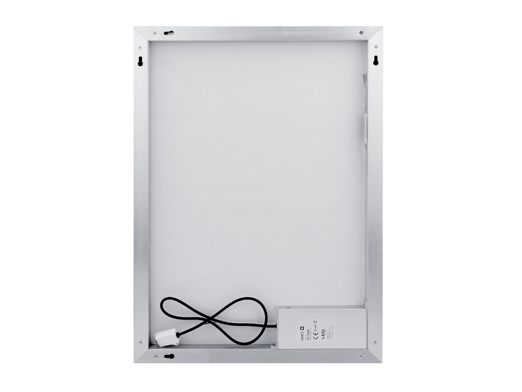 Obdélníkové zrcadlo s rámem s ostrými rohy a celoobvodovým svícením pro dokonalé a rovnoměrné osvětlení.Zrcadlo se ovládá dvěma dotykovými podsvícenými senzory, které umožňují změnu barvy světla, nastavení intenzity osvětlení (stmívání) a disponují paměťovou funkcí pro uložení posledního nastavení. Kromě toho lze zrcadlo ovládat i pomocí nástěnného vypínače, což zvyšuje jeho flexibilitu a pohodlí použití.