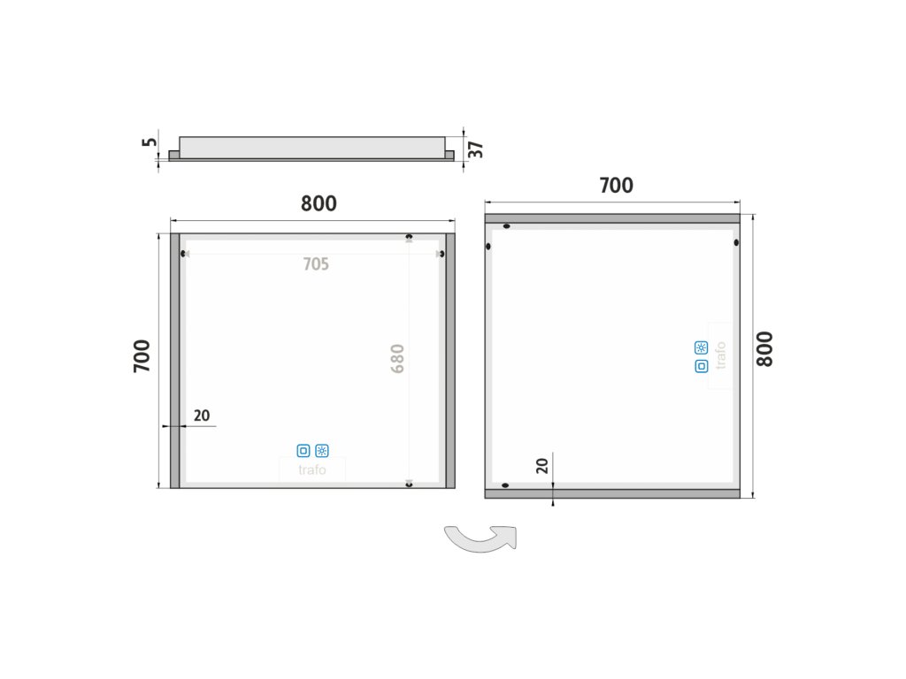LED zrcadlo 800x700 se dvěma dotykovými senzory - ZP 11003VX