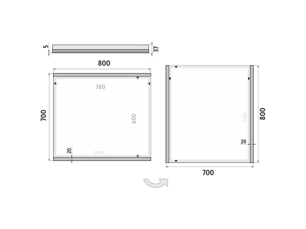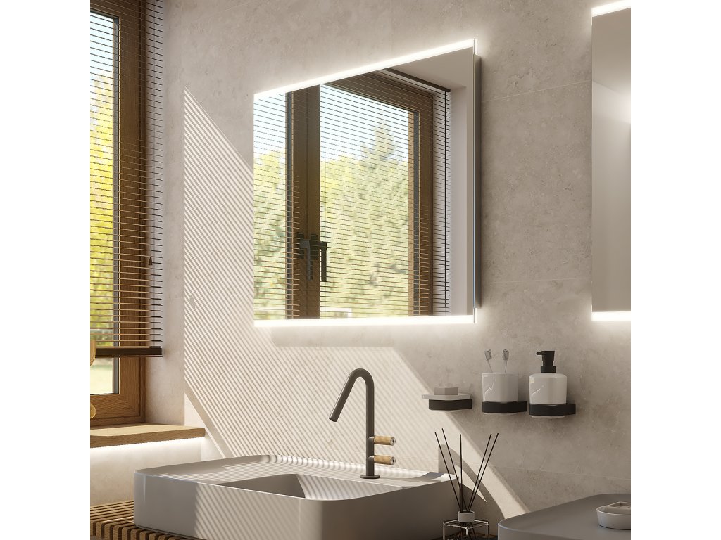 Obdélníkové bezrámové zrcadlo s ostrými rohy a podsvícením ze spodu a shora pro rovnoměrné a stylové osvětlení.Zrcadlo bez integrovaného vypínače je určené k připojení a ovládání nástěnným vypínačem. Barva podsvícení zrcadla je pevně nastavena.