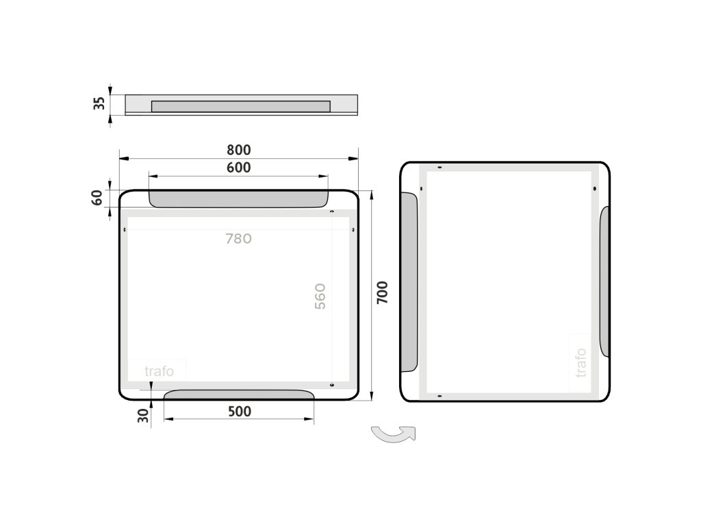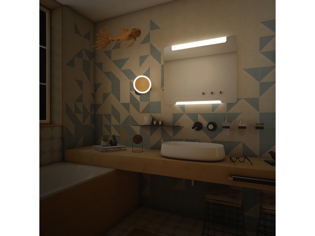 Zrcadlo do koupelny 80x70 s osvětlením je skvělým doplňkem do koupelny. Zrcadla do koupelny NIMCO vynikají kvalitním zpracováním a moderním designem. Svícení za použití akrylátového skla plexiglass. Konstrukce je z hliníkového rámu 32x19 mm, sklo zrcadla o tloušťce 5 mm. Zrcadlo lze uchytit horizontálně a vertikálně. Připojení 220-240 V. Ochrana IP 44. Bez vypínače. Zapojení do el. rozvodu a zapínání přes vypínač světel v místnosti. LED čipy s vysokým výkonem. Barevná Teplota denní bílá – jasné polední světlo. Životnost LED diod je až 50 000 hodin.Koupelnové podsvícené LED zrcadlo
