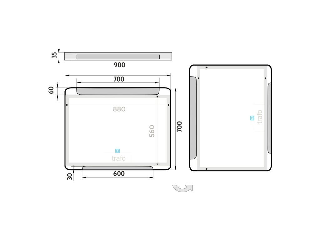 LED zrcadlo 900x700 s dotykovým senzorem - ZP 22019V
