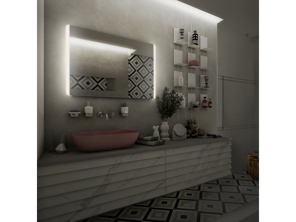 Obdélníkové bezrámové zrcadlo s oblými rohy a podsvícením ze stran pro moderní a elegantní vzhled.Zrcadlo bez integrovaného vypínače je určené k připojení a ovládání nástěnným vypínačem. Barva podsvícení zrcadla je pevně nastavena.