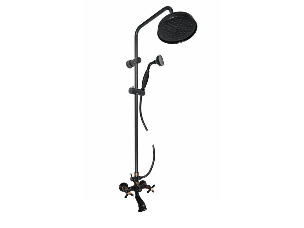 Vodovodní baterie vanová MORAVA RETRO s hlavovou a ruční sprchou se skládá z:
