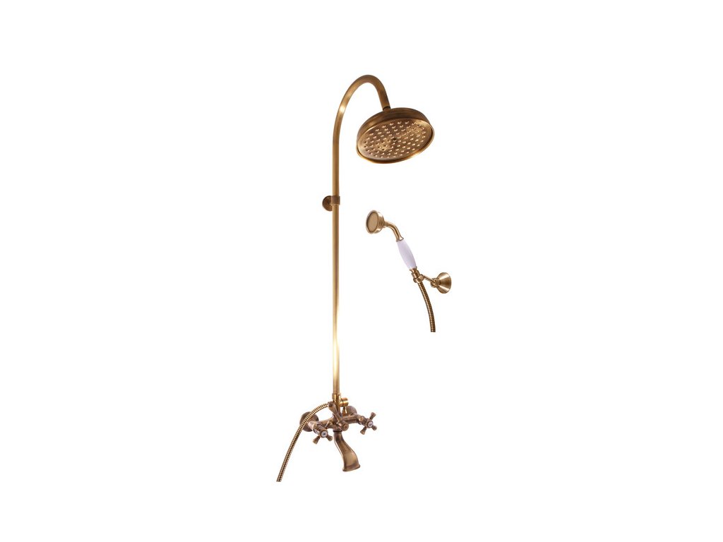 Vodovodní baterie vanová MORAVA STARÁ MOSAZ s hlavovou a ruční sprchou se skládá z: