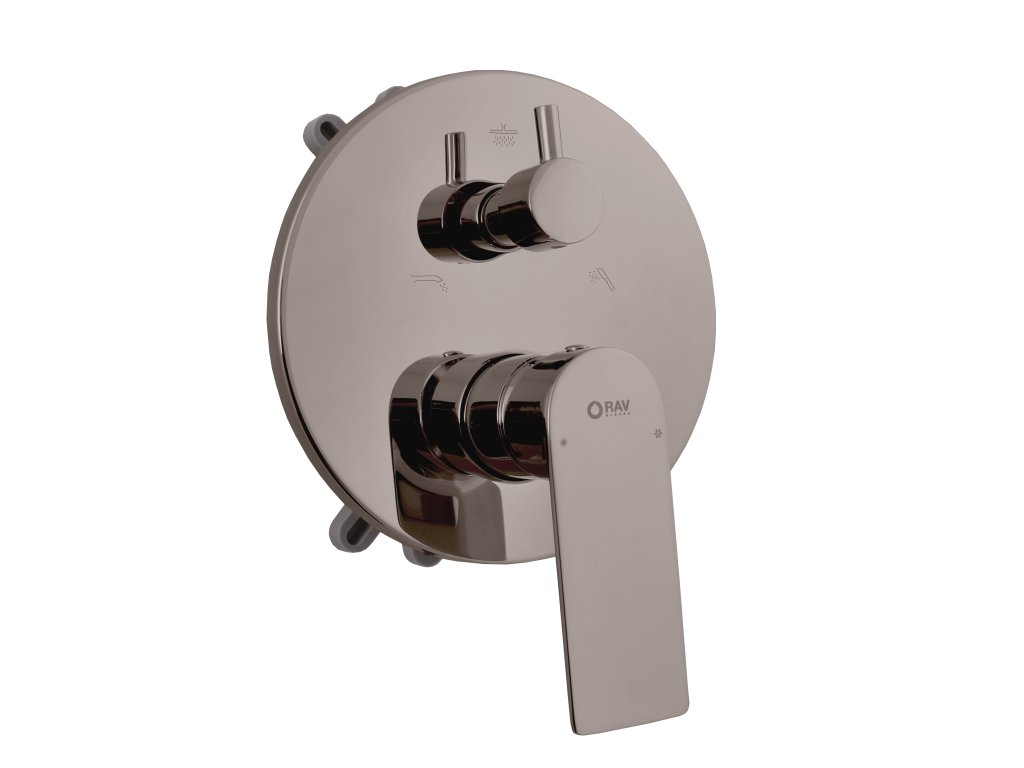 NIL - Vanová/Sprchová baterie podomítková 3-cestná s tělesem a s boxem, Metal grey - lesklá NL187BOXMGL, RAV Slezák