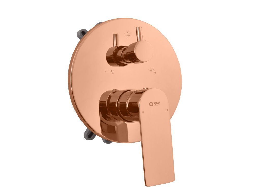 NIL - Vanová/Sprchová baterie podomítková 3-cestná s tělesem a s boxem, Zlatá růžová - lesklá NL187BOXZRL, RAV Slezák