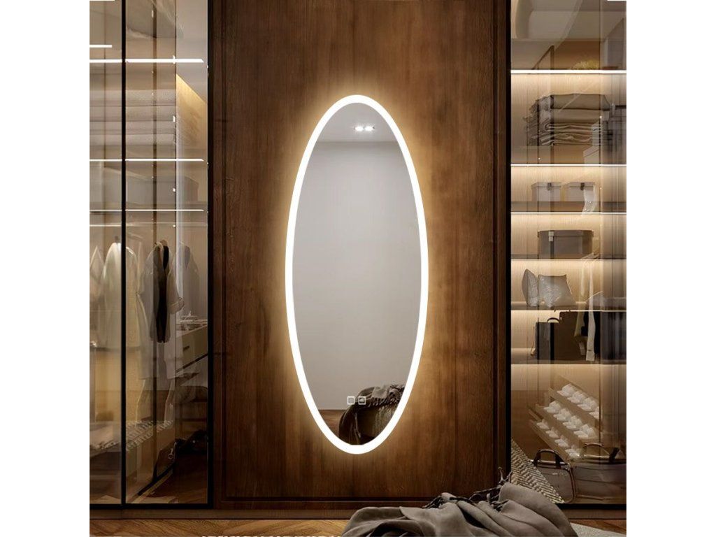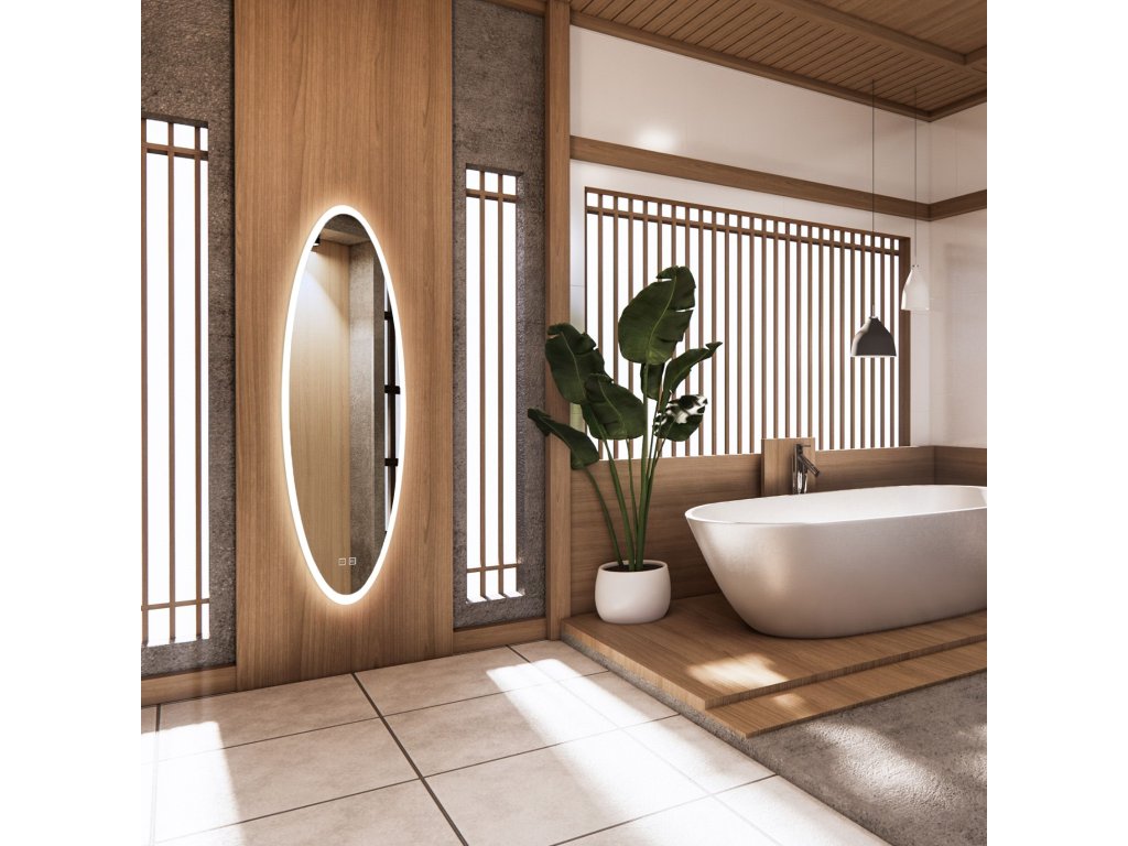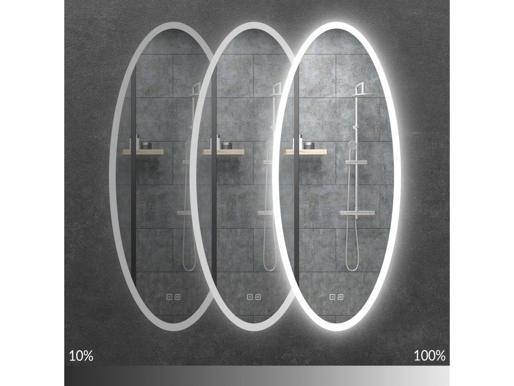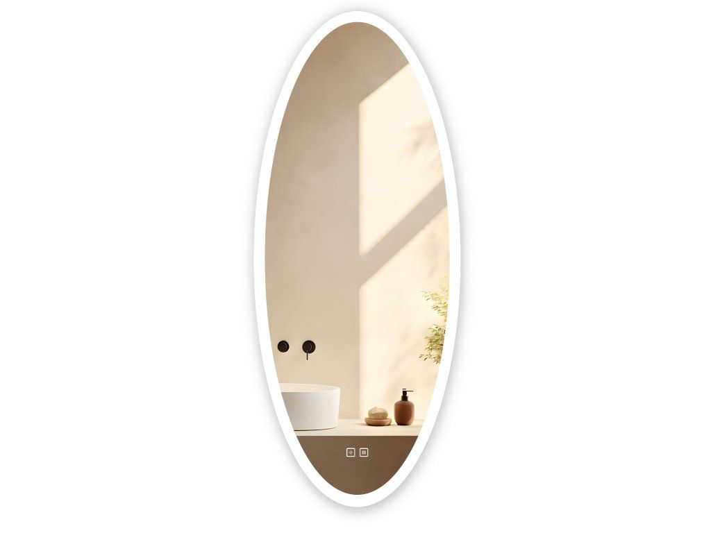 Oválné zrcadlo 50x120 cm s vyhříváním a regulovatelným LED osvětlením HOM-06502