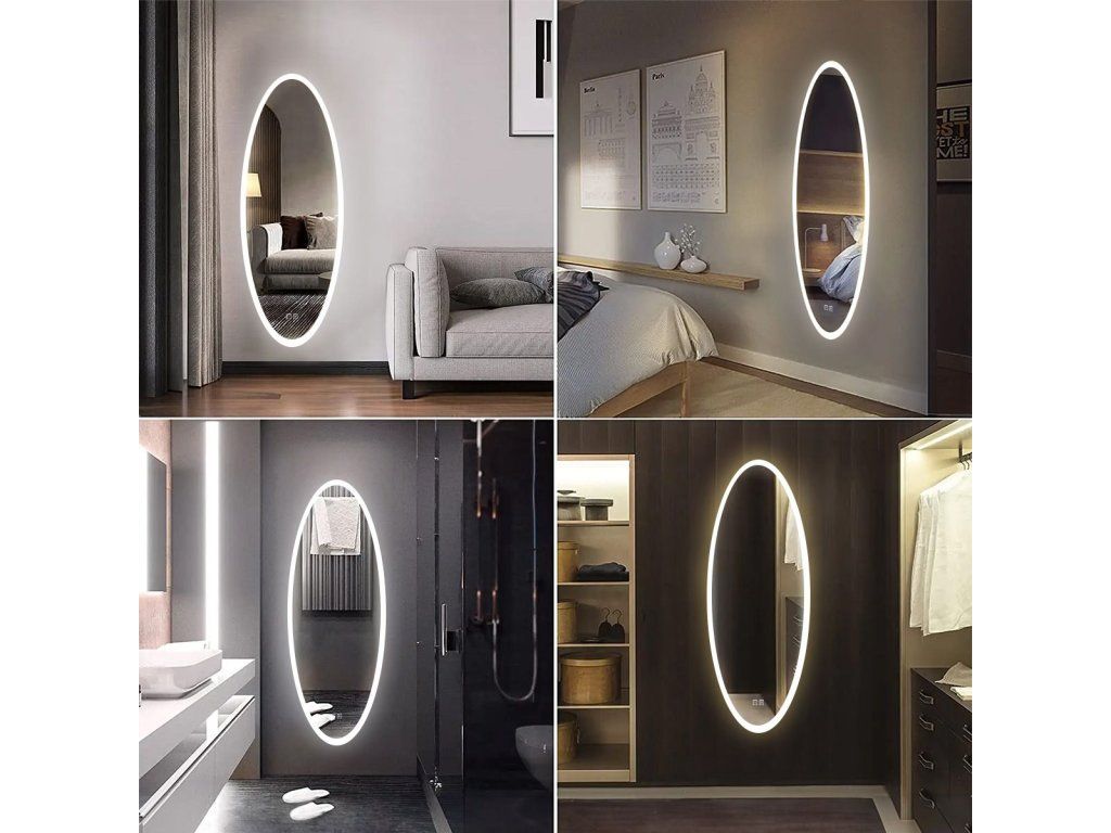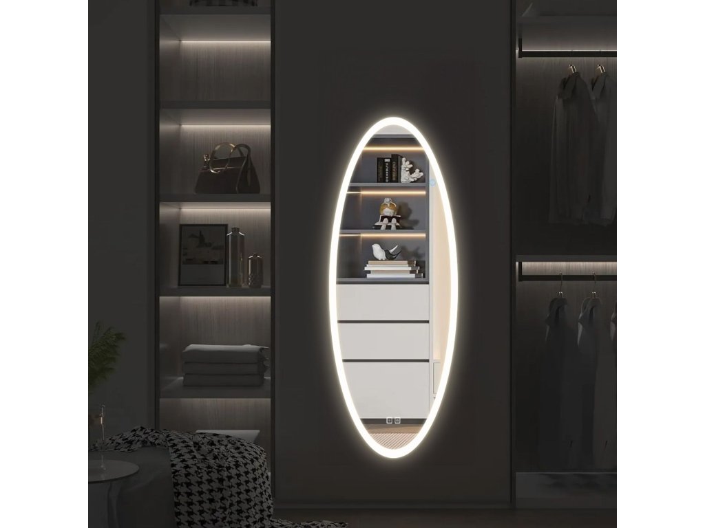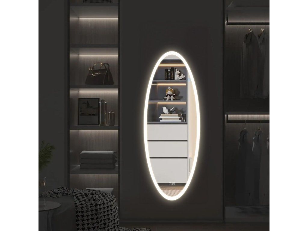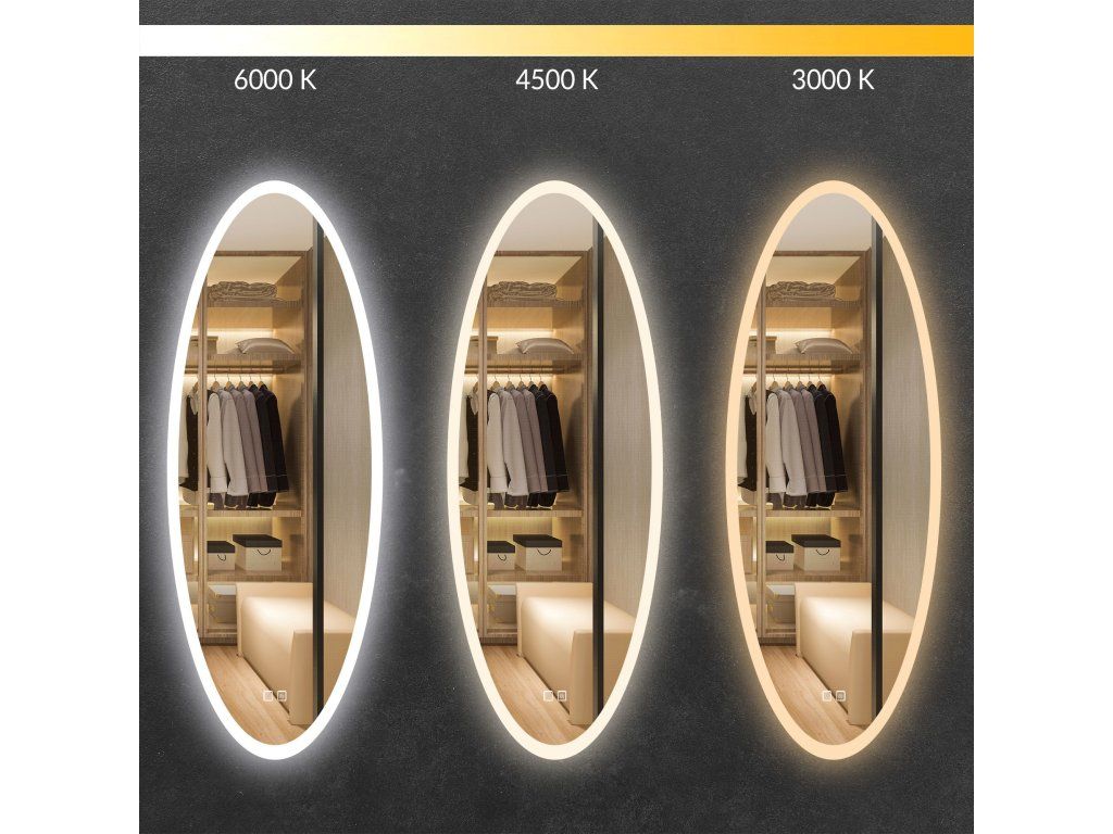 Oválné zrcadlo 50x120 cm s vyhříváním a regulovatelným LED osvětlením HOM-06502