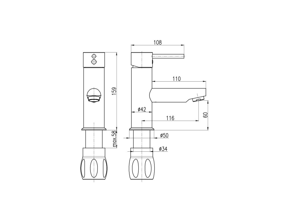 Vodovodní baterie umyvadlová stojánková bez otvírání odpadu.