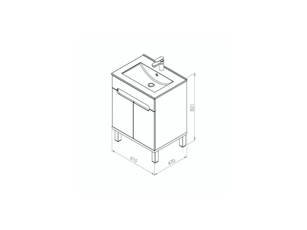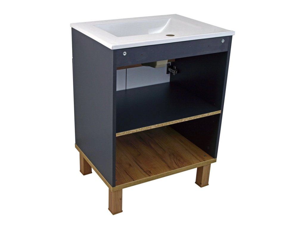 Skříňka Orion L 60 s keramickým umyvadlem UM-ASU 60 s přepadem a otvorem pro montáž vodovodní baterie