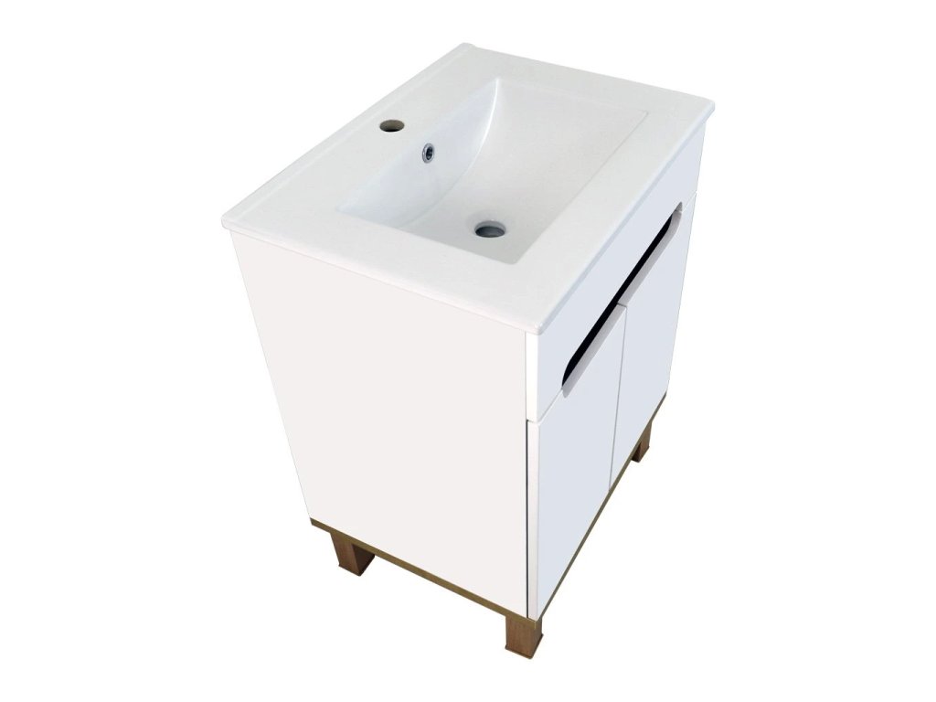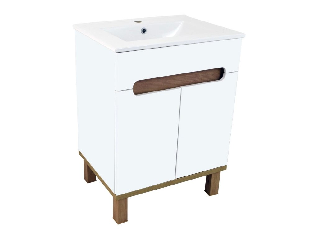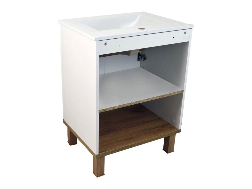 Skříňka Orion W 60 s keramickým umyvadlem UM-ASU 60 s přepadem a otvorem pro montáž vodovodní baterie