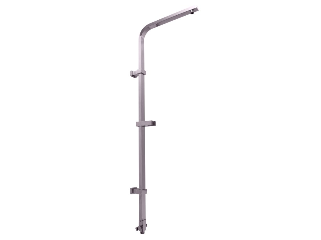 Sprchová tyč hranatá s přepínačem k baterii s hlavovou a ruční sprchou.