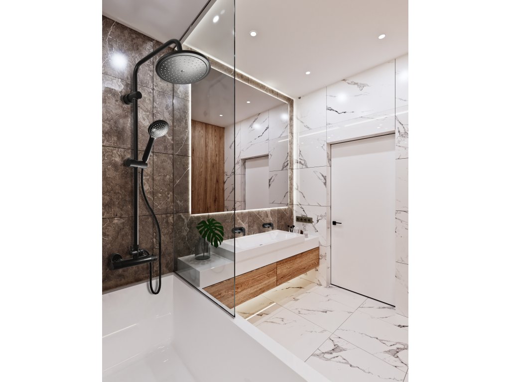 Vodovodní baterie sprchová TERMOSTATICKÁ s hlavovou a ruční sprchou se skládá z: