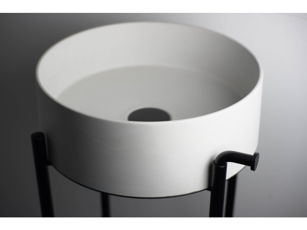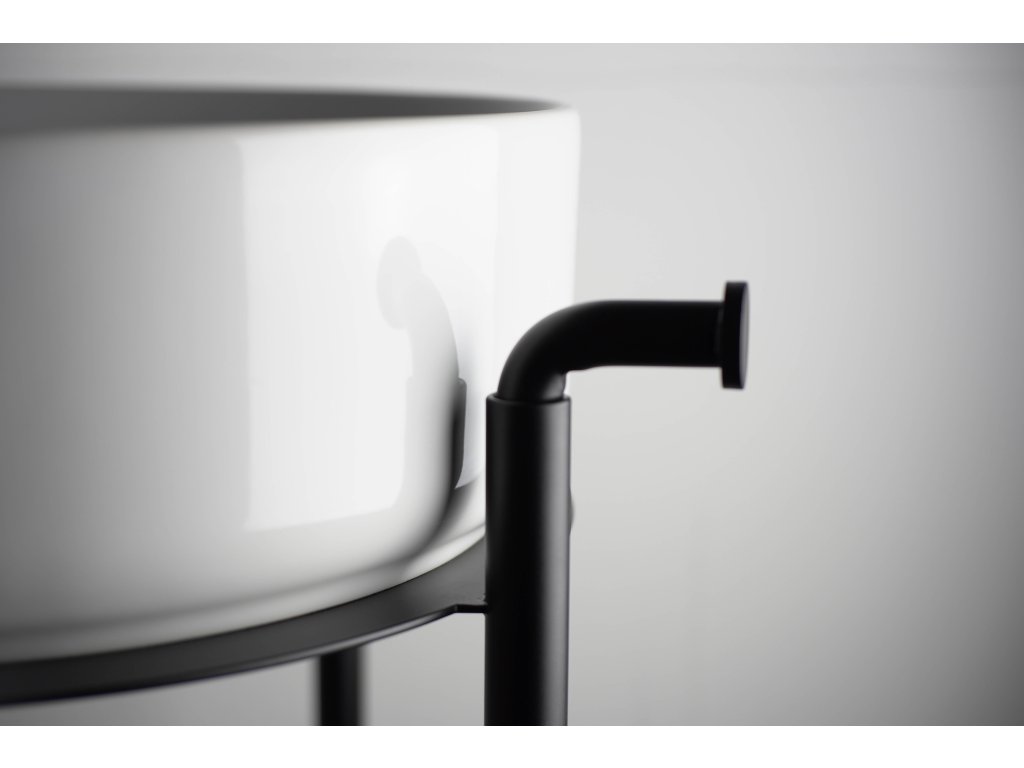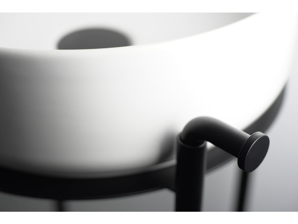 Minimalistický design zdůrazňuje jemné linie umyvadla a dodává koupelně lehkost a jemnost. Pevná konstrukce konzole zajišťuje její stabilitu a černá matná povrchová úprava bude fungovat jak v elegantním aranžmá, tak v syrovém, loftovém interiéru. Nábytek je navíc vybaven praktickými řešeními, jako je police na kosmetiku nebo háček na ručník.