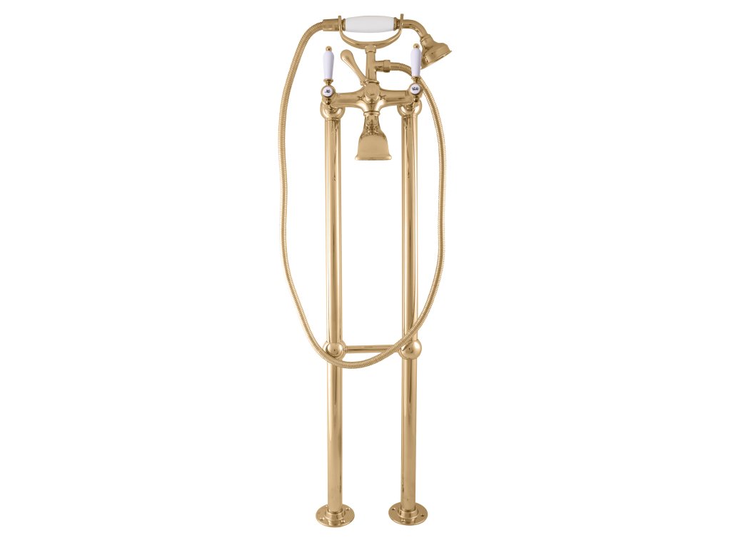 Vodovodní baterie vanová, vysoká, volně stojící se sprchou - zlato.