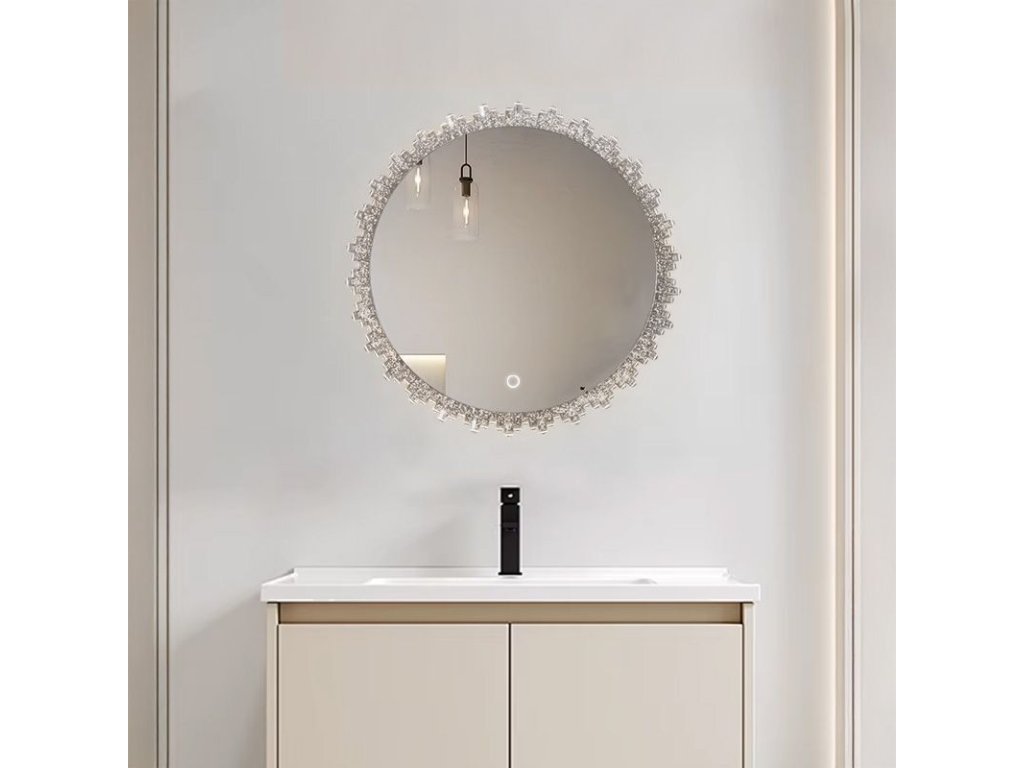 Elegantní LED zrcadlo s dekorativním akrylovým rámem je dokonalým spojením moderního designu a funkčnosti.