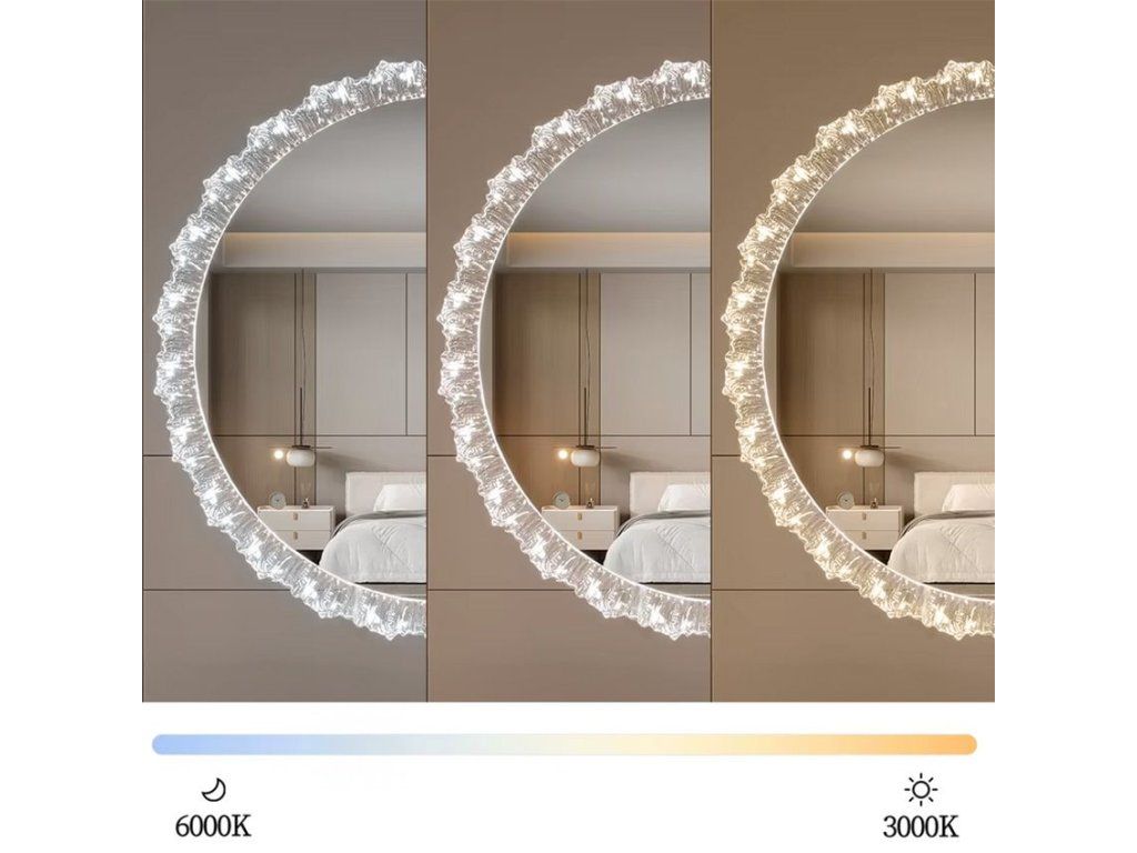 Zrcadlo nabízí možnost výběru z tří barev světla LED – teplé, neutrální a studené – díky čemuž snadno přizpůsobíte osvětlení náladě nebo denní době.