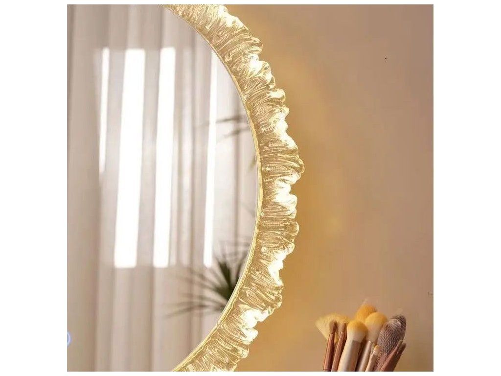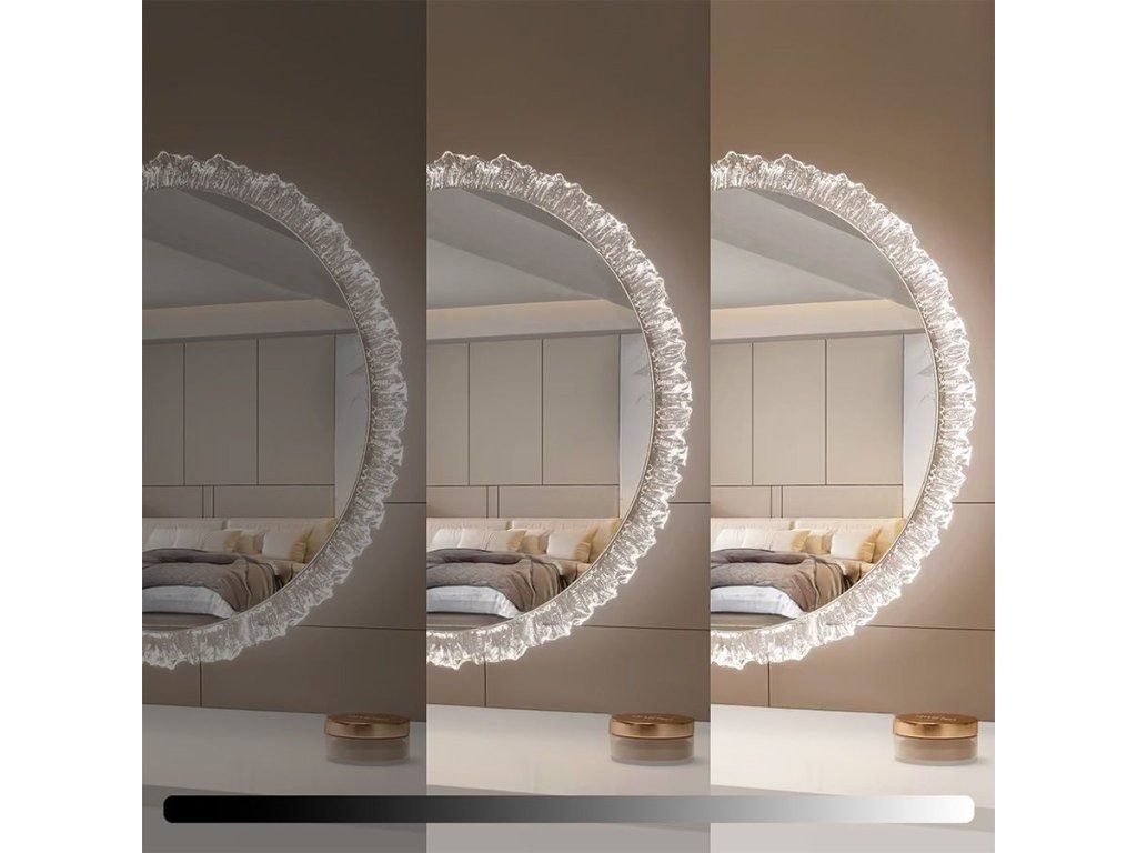 Moderní LED zrcadlo s efektivním rámem vyrobeným z akrylu je stylovým doplňkem do každé elegantní místnosti.
