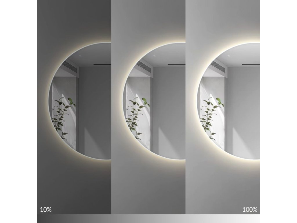Zrcadlo nabízí velmi snadnou možnost personalizace barvy osvětlení. Změna se provádí pomocí krátkého stisknutí dotykového tlačítka na zrcadle a je velmi intuitivní. Současně lze také u zrcadla ovládat dlouhým stisknutím (přidržením) dotykového vypínače intenzitu osvětlení na podsvětleném tlačítku.