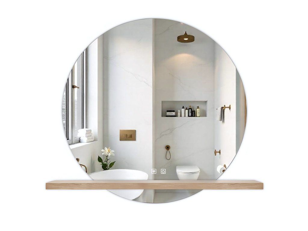 Kruhový tvar, jemná polička z lehkého dřeva a pokročilé technologické funkce činí toto zrcadlo ideálním doplňkem do elegantních a minimalistických prostor.
