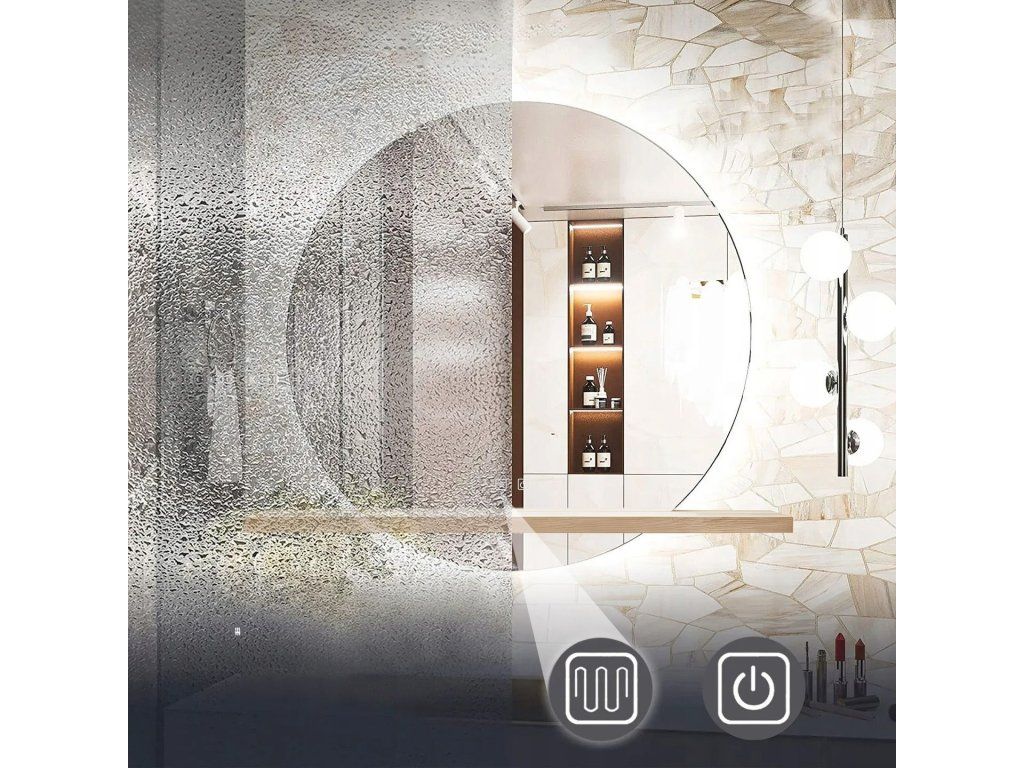 Zrcadlo ⌀60 cm s vyhříváním a regulovatelným LED osvětlením HOM-02696