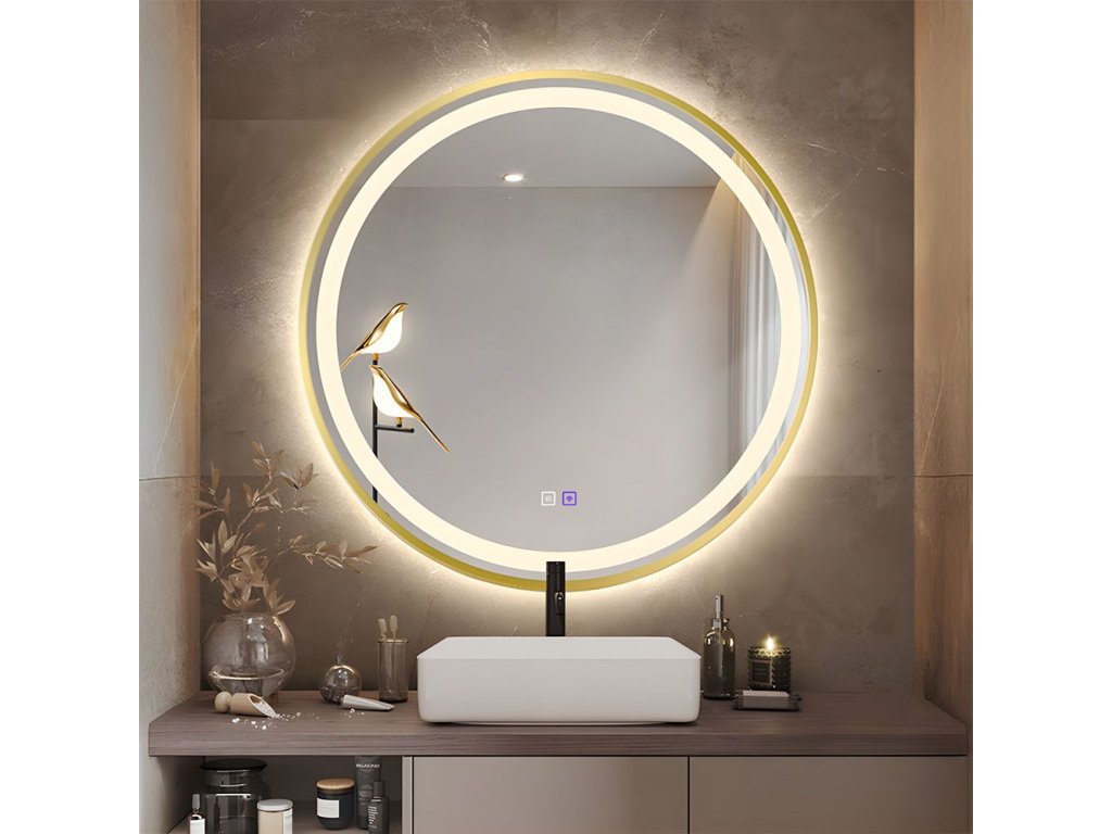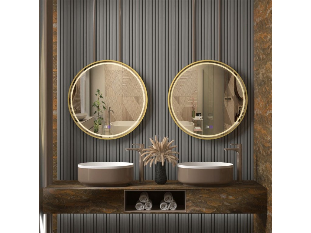 Zrcadlo ⌀70 cm s vyhříváním a regulovatelným LED osvětlením HOM-02502, zlaté