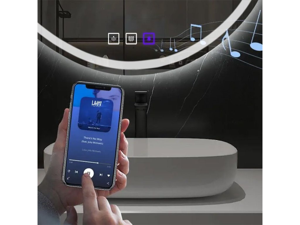 Integrované LED osvětlení nabízí dotykové ovládání s možností změny barvy světla na teplé, neutrální či studené. Toto funkční řešení umožňuje přizpůsobit atmosféru v koupelně všem potřebám. Dotykový panel s podsvíceným tlačítkem umožňuje nastavení intenzity osvětlení a přizpůsobit ji individuálním preferencím uživatele.K zrcadlu je možno připojit mobilní telefon pomocí BT technologie a přehrávat hudbu.