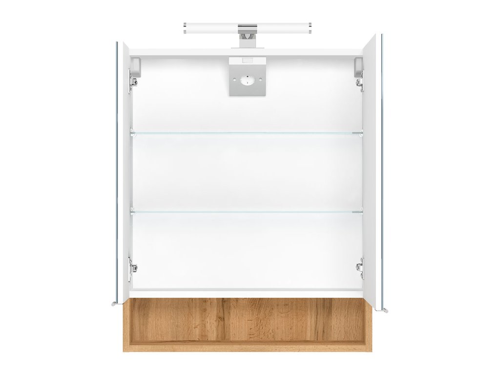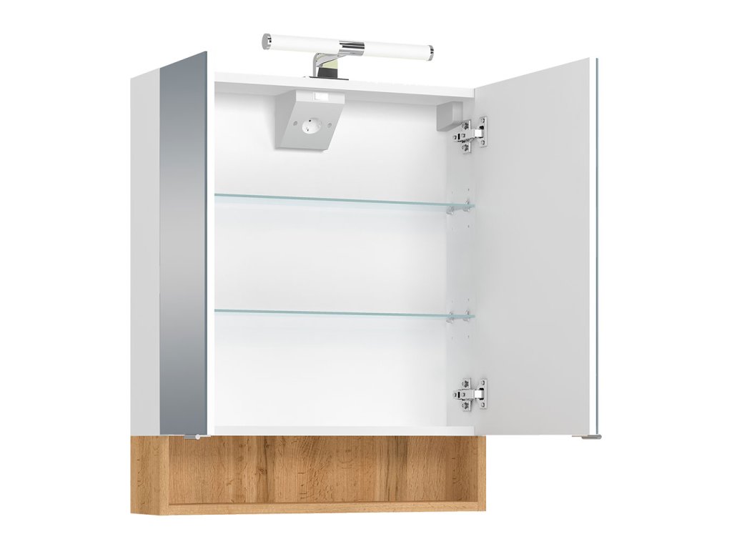 Součástí skříňky je energeticky úsporné LED osvětlovací těleso. Praktickým doplňkem skříňky je elektrobox s vypínačem a el. zásuvkou umístěný uvnitř skříňky. Skvěle se hodí k uschování zubních kartáčků, hygienických a kosmetických prostředků, holících pomůcek, hřebenů a pod. Při každodenní hygieně tak budete mít vše potřebné po ruce.