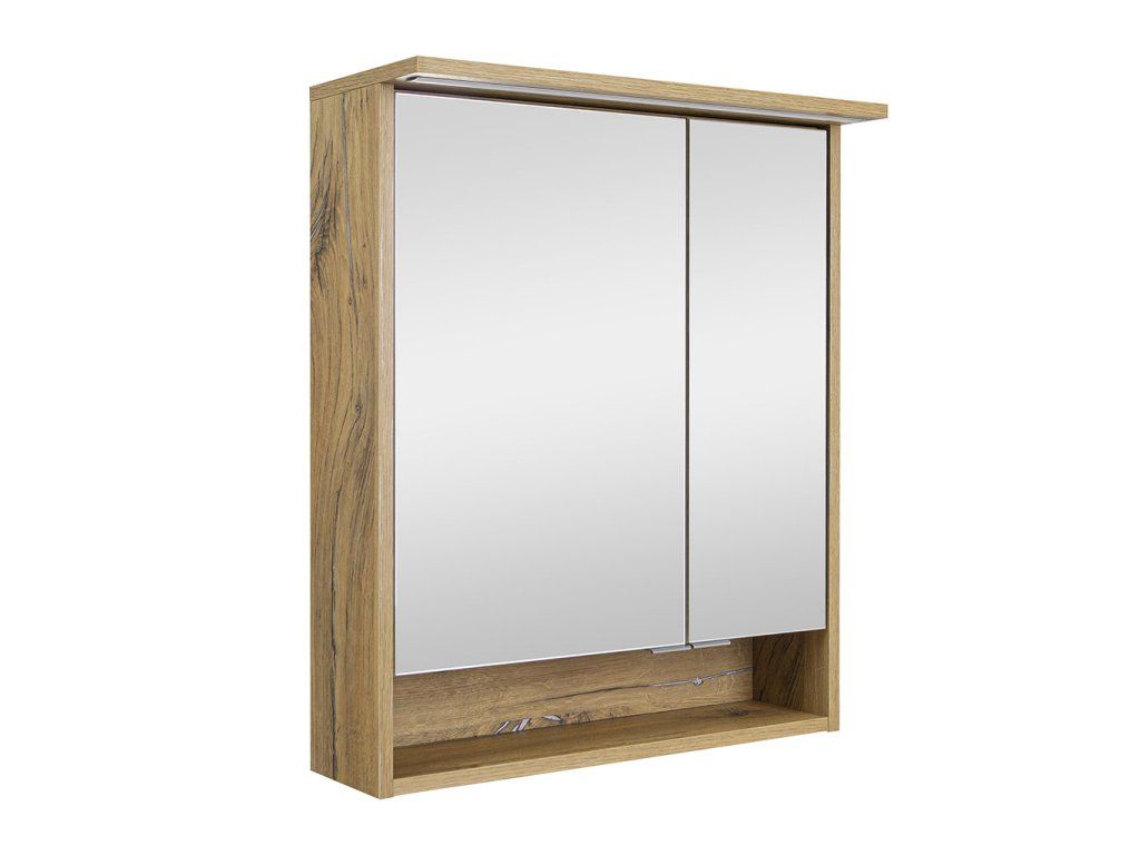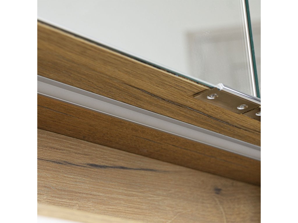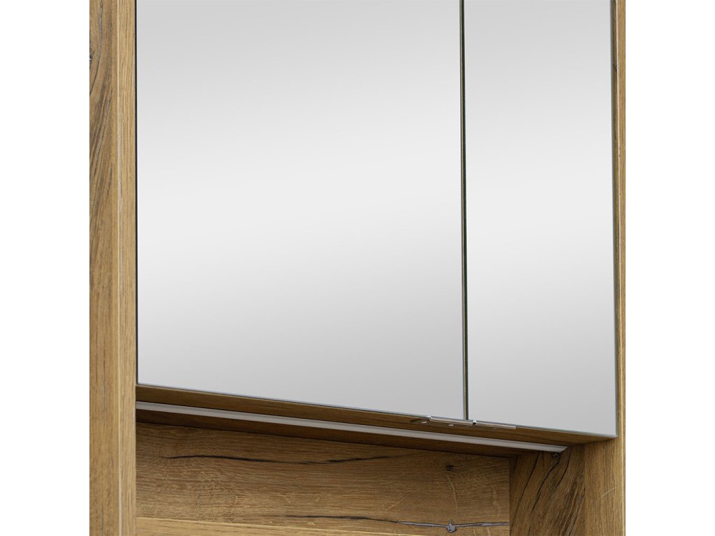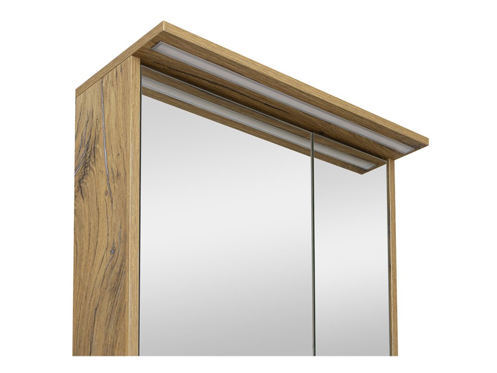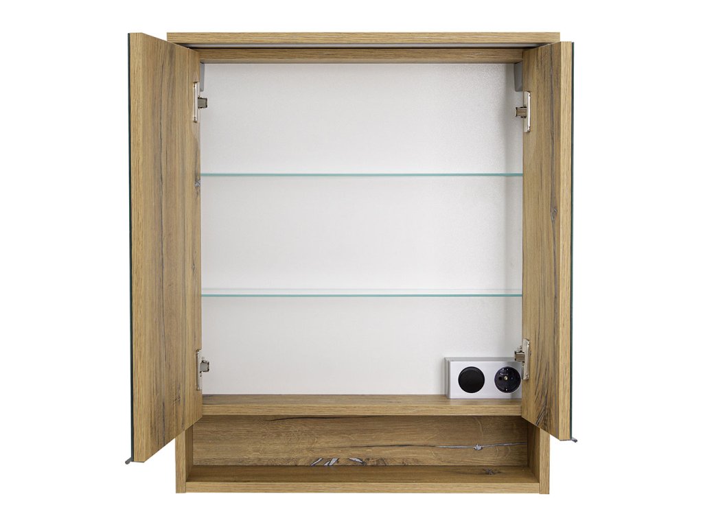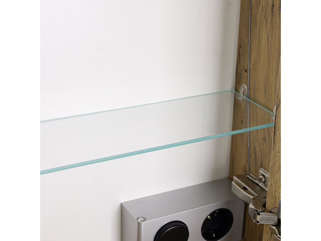 Součástí skříňky je horní rampa s LED osvětlovacím tělesem. Praktickým doplňkem skříňky je elektrobox s vypínačem a el. zásuvkou umístěný uvnitř skříňky. Skvěle se hodí k uschování zubních kartáčků, hygienických a kosmetických prostředků, holících pomůcek, hřebenů a pod. Při každodenní hygieně tak budete mít vše potřebné po ruce.